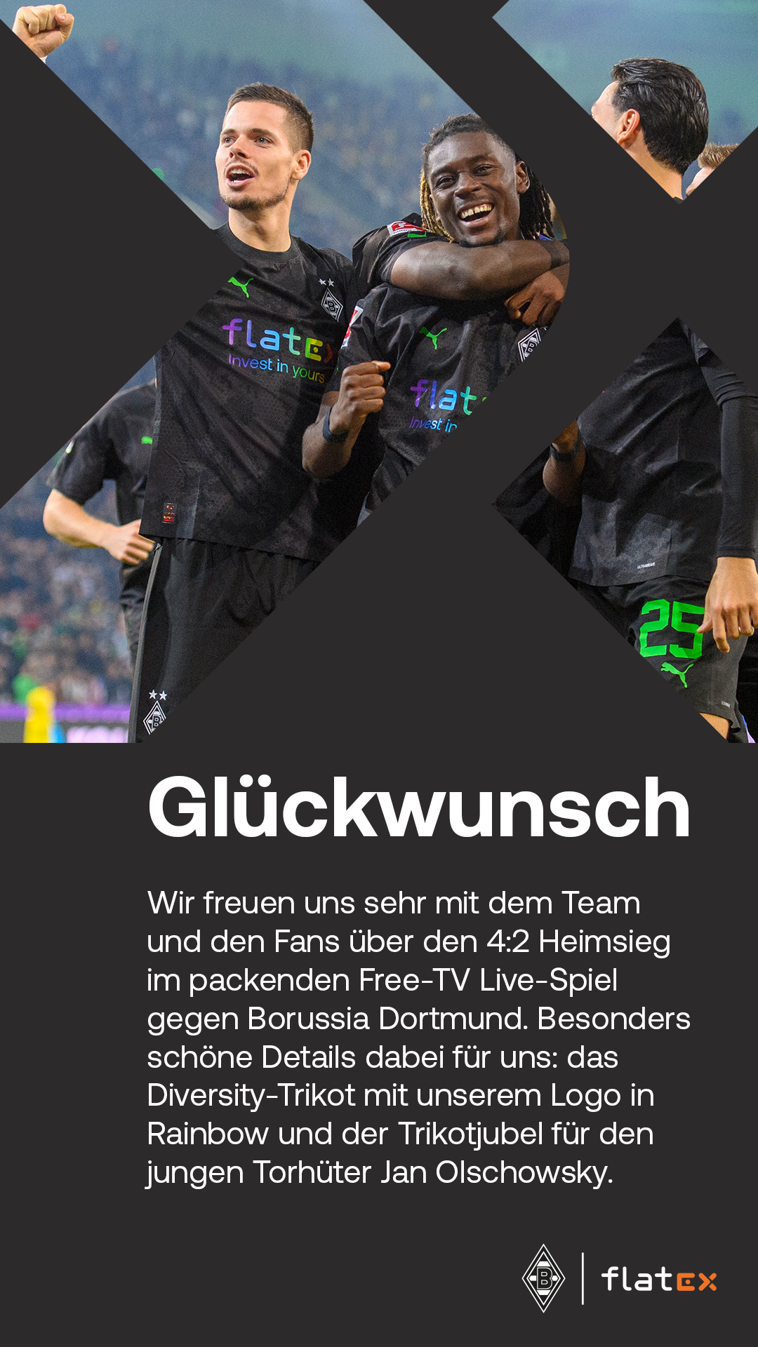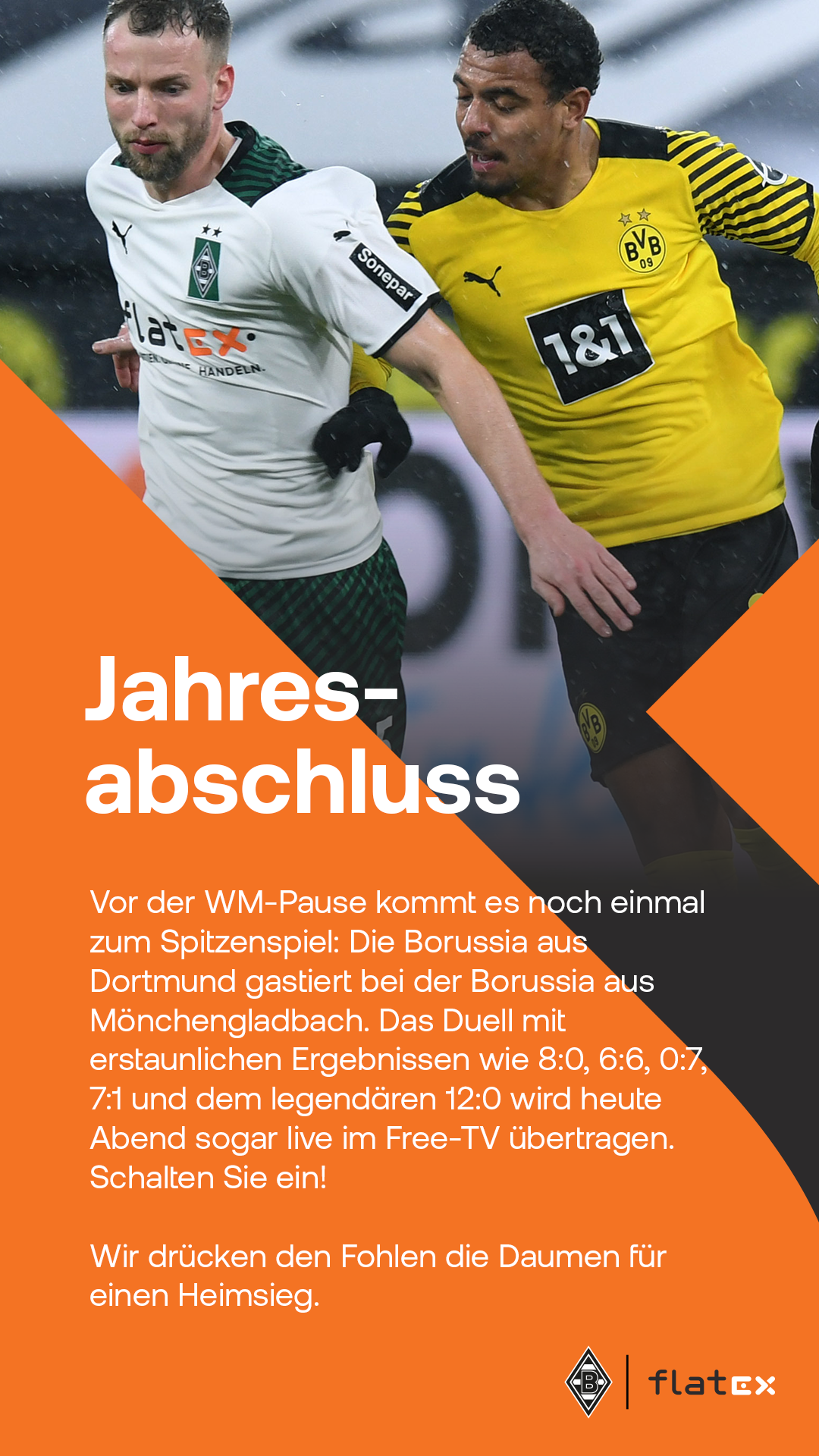 Redaktionsarbeit und Content-Zulieferung für die Social Media Plattformen von flatex im Zusammenhang mit dem Hauptsponsorship bei Borussia Mönchengladbach